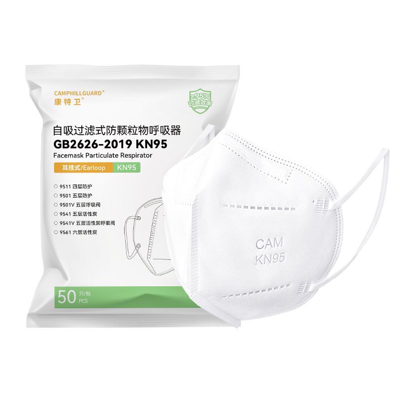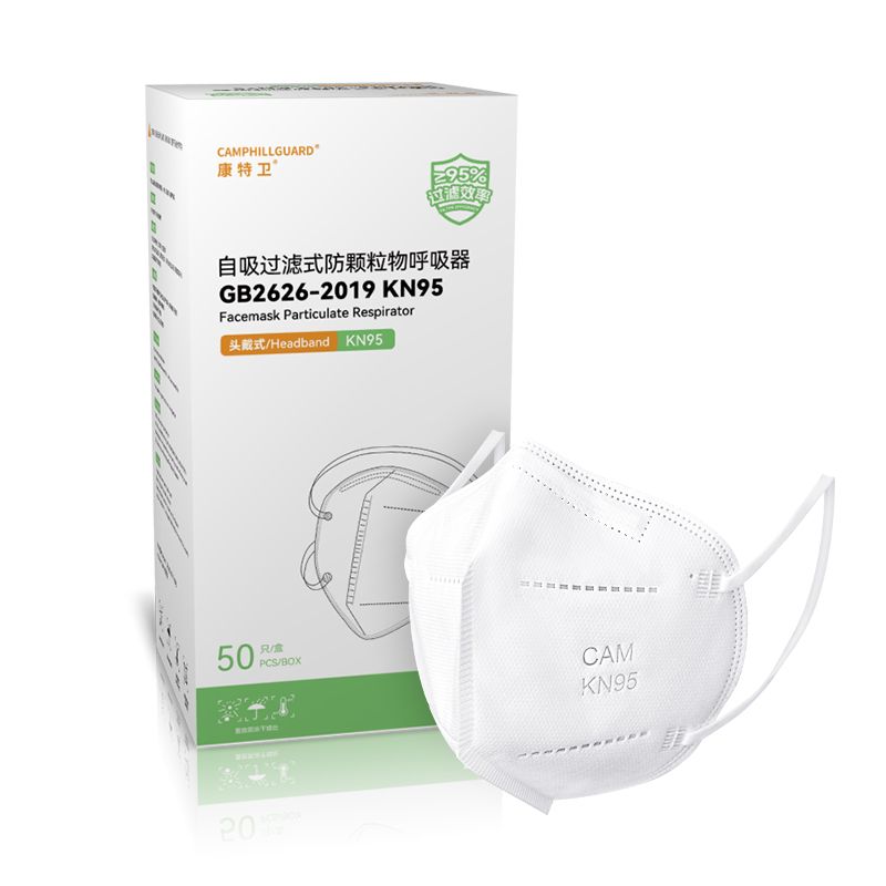 - **材质与结构**:康特卫CAMPHILLGUARD®自吸过滤式防颗粒物呼吸器口罩主要由口罩体、鼻夹、口罩带组成。口罩体材料从外至内依次为聚丙烯纺粘无纺布、活性炭布(活性炭款)、聚丙烯熔喷无纺布、热风棉、聚丙烯纺粘无纺布,鼻夹为可弯折可定型材料,口罩带为弹性材料,采用头戴式设计,产品包含有阀或无阀两种类型。