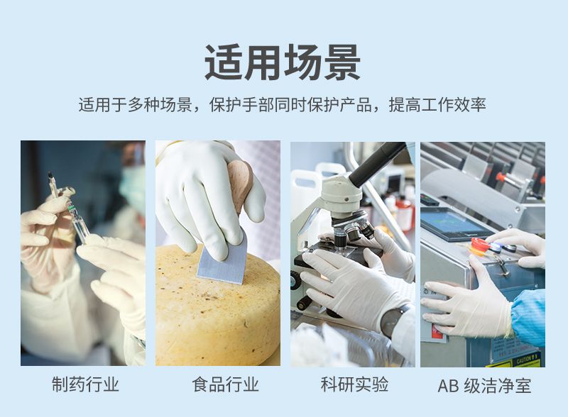 - **无粉设计**:手套为无粉款式,可减少粉尘对操作环境和人体的影响,降低过敏风险。