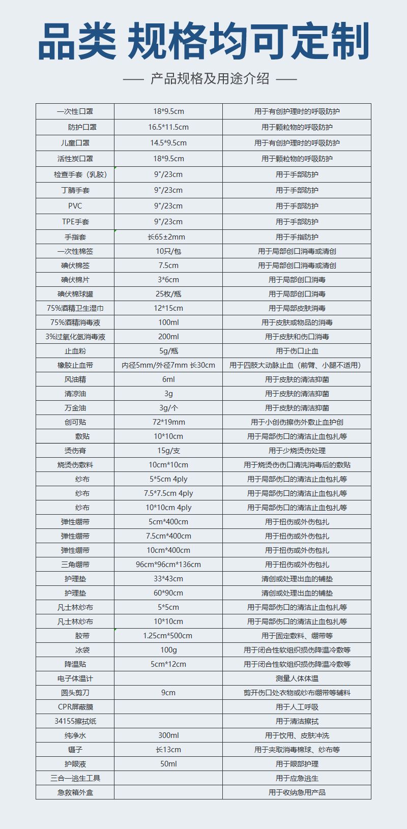 > 家庭急救包便携式户外家用露营应急救援包应急包