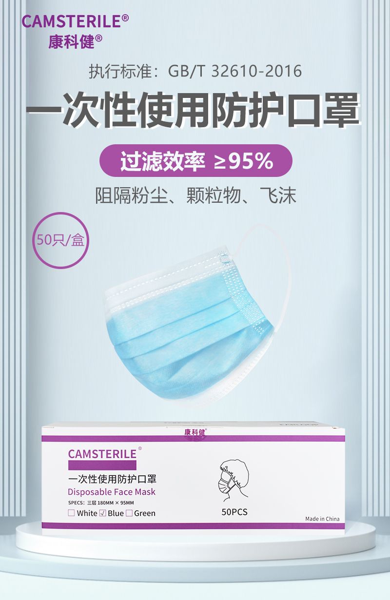 > 康科健一次性医用口罩级5只/包医护级防护盒装大人隔离医护同款一次性盒装口罩