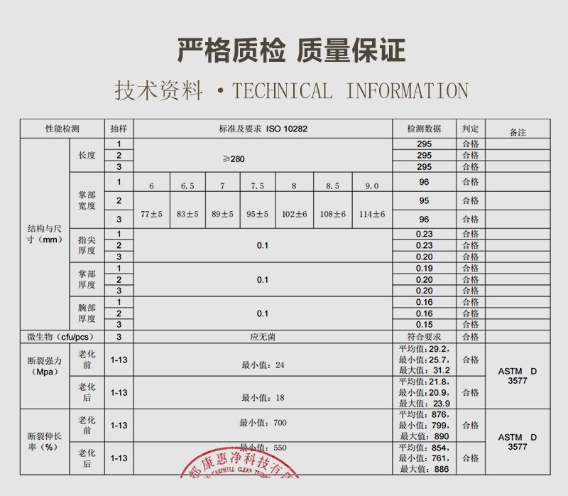 - 产品特点:手套表面经特殊处理,可能为麻面设计,具有防滑功能,便于操作。同时,它具有优良的耐稀酸、碱性及抗磨耗、抗撕裂性能,能提供可靠的防护。